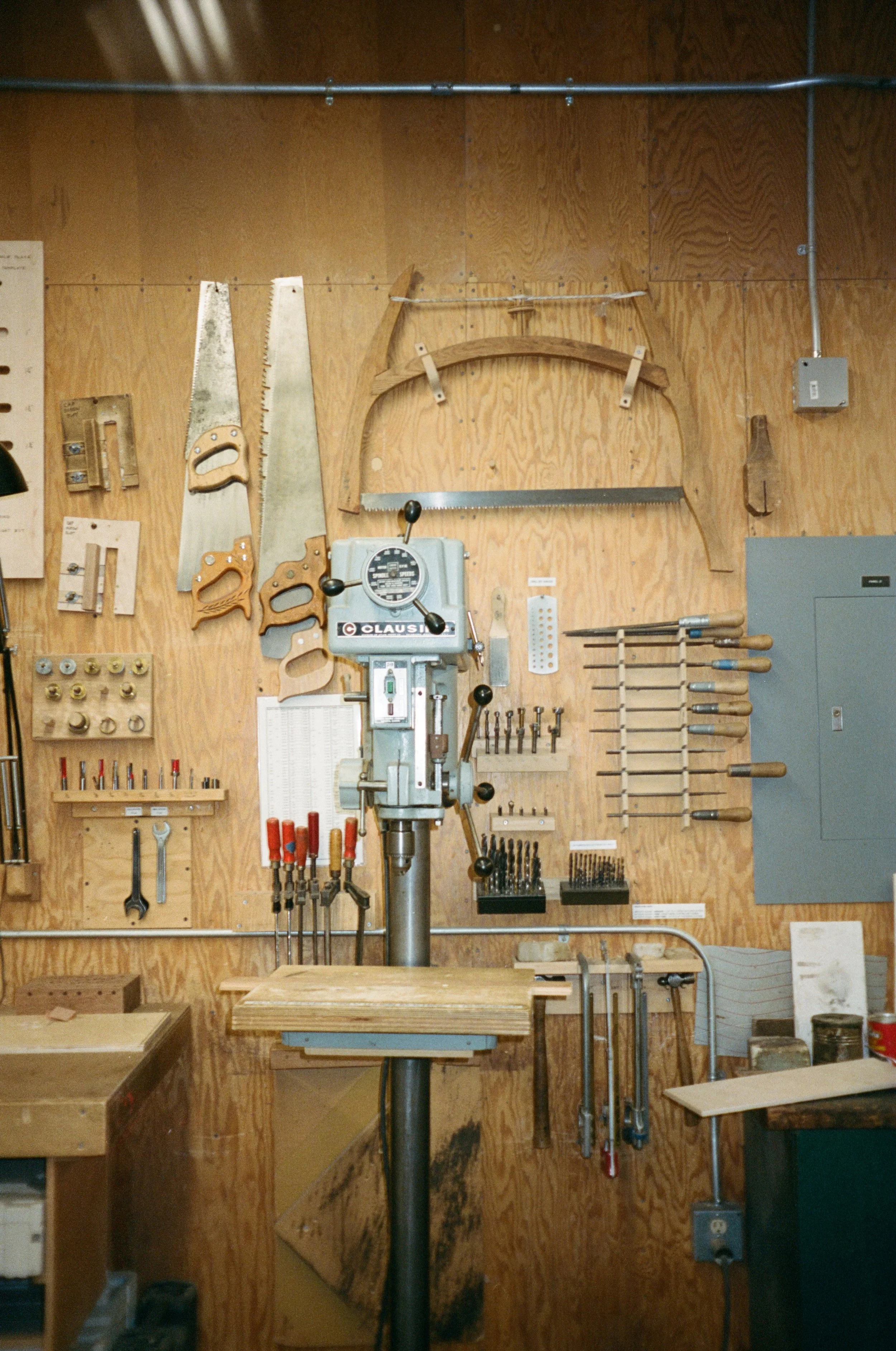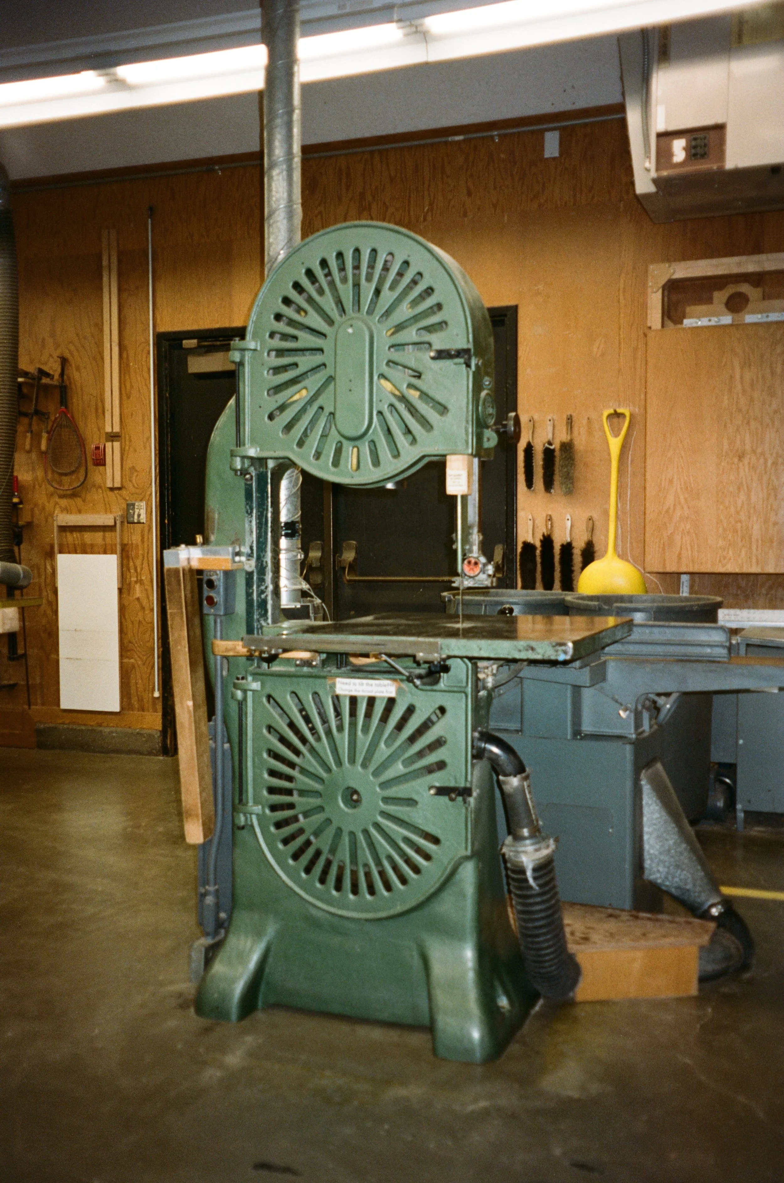 The bench room was like Project Runway or Great British Bake Off meets woodworking. Everyone had their handmade planes lined up on their shelves. The school has a massive wood collection, and you need sign-off from multiple teachers if you want to use the rarer species. The machine shop featured a beautiful green bandsaw with a gorgeous pattern. It was inspiring to be back in a communal maker space, and it was worth the pit stop. I didn’t feel tired anymore.