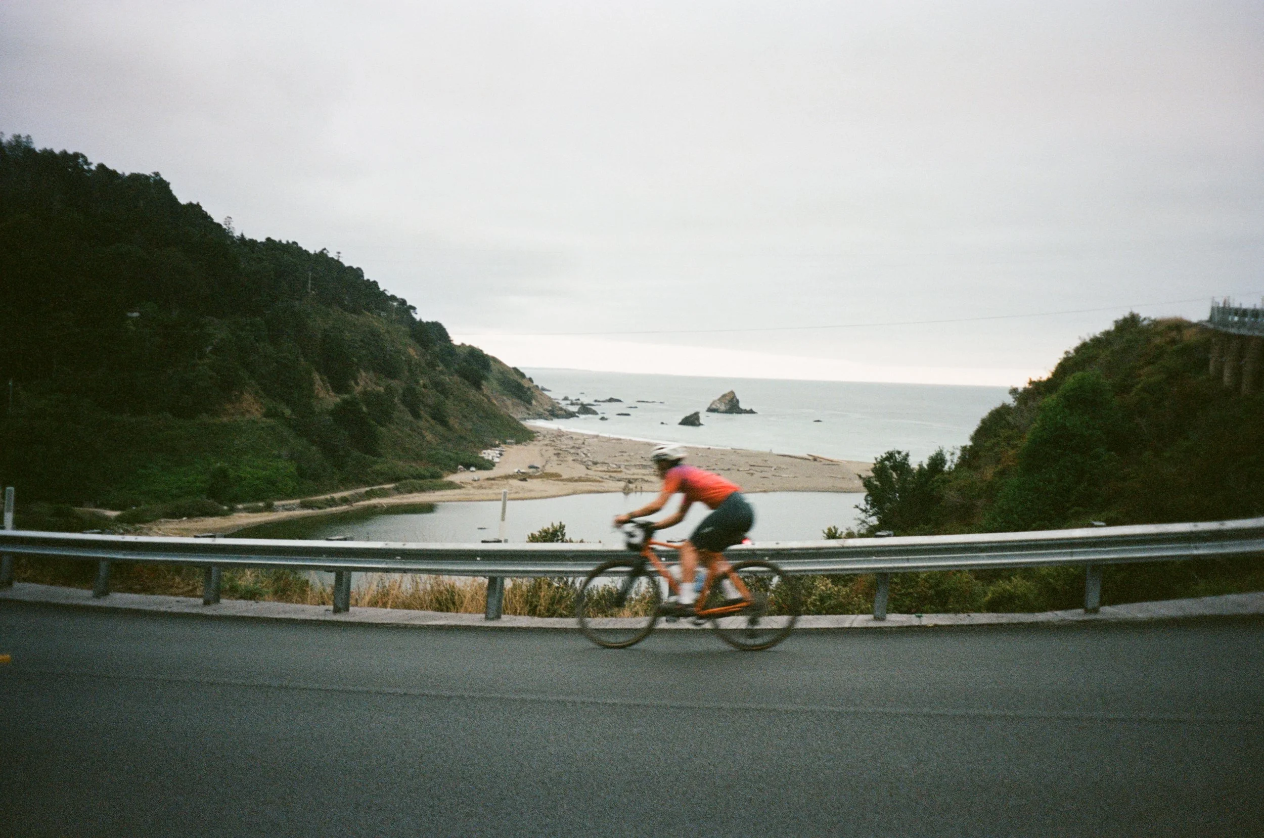 There was still plenty of sunlight when we made it to our Airbnb in Albion, CA, so we decided to ride. We headed across the Albion Bridge and cut inland. We had some amazing descents into Comptche before reaching Highway 128. We flew through the redwoods and experienced the cathedral effect of light streaking through the branches. At Navarro Point, we caught the sunset and then biked home in the dark to a dinner of lightly smoked canned salmon and bagels. We bathed under the stars, satisfied.